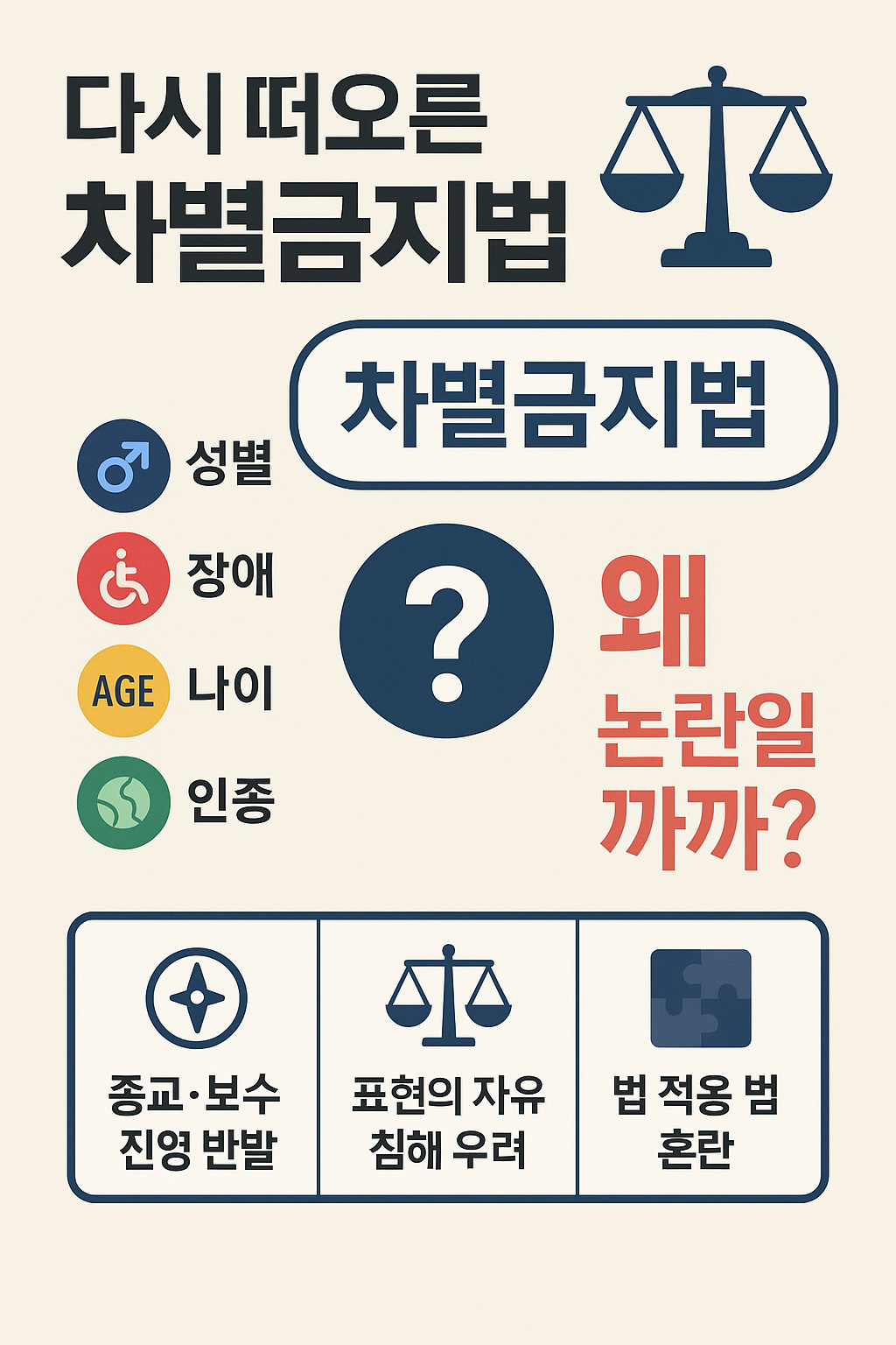 | 🧩 법 적용 범위에 대한 혼란 | “어디까지가 차별이고, 어디까지가 권리인가?” 논쟁 |