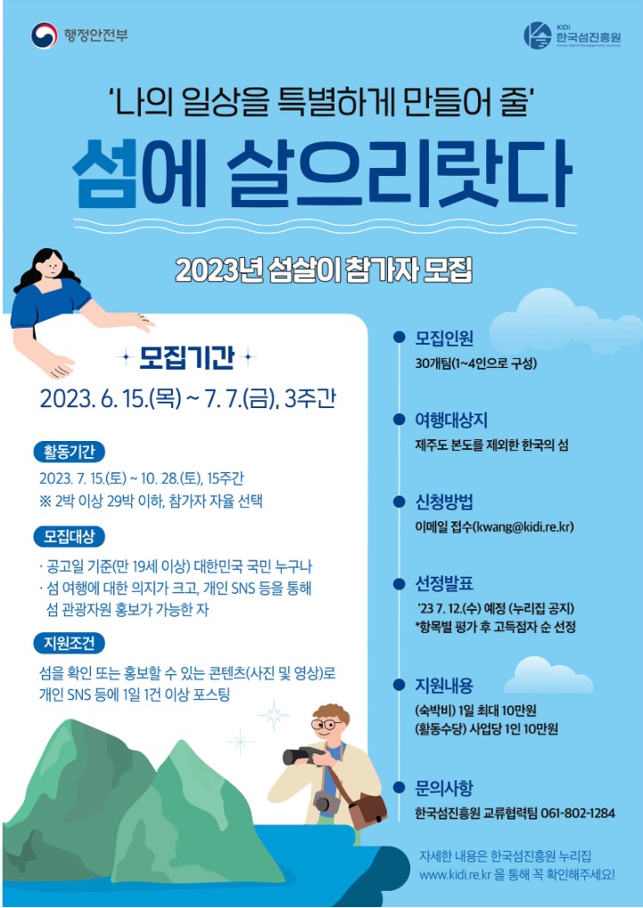 담당자: 한국섬진흥원 교류협력팀 김광민 주임(061-802-1284)
